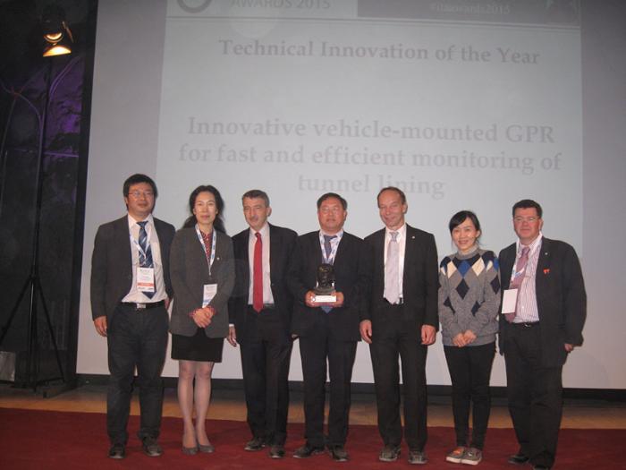 11月19日,国际隧道与地下空间协会(International Tunnelling and Underground Space Association,简称ITA)在瑞士Hagerbach试验长廊内召开颁奖大会。西南交通大学地球科学与环境工程学院昝月稳教授、李志林教授等申报的“高效快速检测隧道衬砌结构状态车载探地雷达新技术”荣获ITA2015年“年度技术创新奖”(Technical Innovation of the Year)。这是ITA的首个年度技术创新奖,也是中国今年获得的唯一奖项。